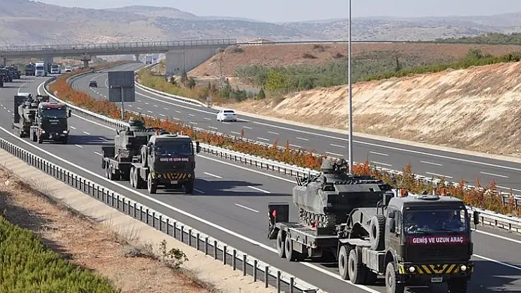 Adana-Gaziantep otoyolunu kullanarak Şanlıurfa'dan geçen ve içerisinde tank ve zırhlı araçların bulunduğu konvoy, sınıra doğru ilerleyişini sürdürdü.