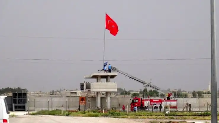 Suriye'nin kuzeyindeki terör örgütü PKK/PYD/YPG kontrolündeki Tel Abyad ilçesinin karşında bulunan, Şanlıurfa'nın Akçakale ilçesi Hürriyet Mahallesinde dikilen 12 metre yüksekliğinde 4 metrelik Türk bayrağı, yerinden sökülerek sınır hattındaki 8 metre yükseklikteki beton kulenin üzerine dikildi.