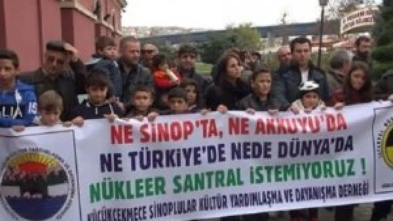 Küçükçekmece Sinoplular Derneği, İstanbul Nükleer Karşıtı Platform ve Sinop Nükleer Karşıtı Platform üyesi bir grup, "Sinop Tanıtım Günleri" etkinliğinin yapıldığı Feshane Kongre ve Kültür Merkezi'nde bir araya geldi. "Ne Sinop'ta ne Akkuyu'da ne Türkiye'de ne de dünyada nükleer santral istemiyoruz", "Çernobil'in gölgesi üstümüzdeyken nükleer gölge etme başka ihsan istemez", "Sinop Fukuşima, Akkuyu Çernobil olmasın" pankartı açan grup, "Nükleere inat, yaşasın hayat", "Sinop Çernobil olmasın" sloganları attı. "Sinop Tanıtım Günleri" kapsamında stant açmak isteyen gruba, polis izin vermedi. Grup adına konuşan Küçükçekmece Sinoplular Derneği Başkanı Adnan Çakar, Türkiye'de nükleer santralin ilk adımının Akkuyu'da atıldığını ve buranın Çevresel Etki Değerlendirmesi (ÇED) raporunun jet hızıyla onaylandığını savundu. Sinop'taki nükleer santralle ilgili çalışmaların da hızlandırıldığını anlatan Çakar, şunları kaydetti: "Dünyaya baktığımızda trajikomik bir durumla karşı karşıyayız. Sanayi devi Almanya'nın, 2022 yılına kadar bütün nükleer santrallerini kapatma kararı aldığında dayandığı nokta olan yenilenebilir enerji kaynakları, bizden katbekat azdır. Buna rağmen bizim 60 kilometrekarelik alanda 225 bin ağaç keserek nükleer ada kurmamız her aklı başında insanda soru işareti yaratmaktadır. İnceburun Yarımadası'nın tamamı ormanlık alan olduğu göz önüne alındığında milyonlarca ağaç daha kesilecektir. Bu insanlar aynı zamanda Amerika'nın 1978 yılından beri nükleer santral siparişi vermemiş olmasını da sorgulamaktadır. Dünya 2000'li yıllara kadar 4 bin 500 santral yapmayı planladığı halde neden 443'ünden fazlasını yapmamıştır? Avrupa'da Finlandiya'da bir nükleer santralden başka göremezsiniz." Adnan Çakar, Sinoplular olarak Gerze'de termik santralin kurulmasına engel olduklarını, bu yöndeki çalışmalarının devam edeceğini söyledi. Nükleer santrallerin iş imkanı üretmeyeceğini aktaran Çakar, "Bizi yalanlarıyla ikna edemeyecekler. Mücadelemizde geri adım atacak olanlar nükleer lobiler olacaktır. Son sözümüz mutlu kenti, mutsuz etmeyin. Mutluluğumuza gölge etmeyin. Sinop, Çernobil olmasın" diye konuştu.