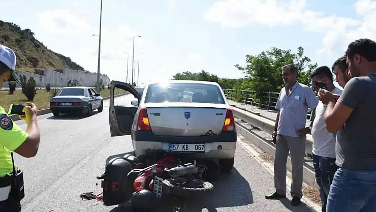 Sinop'ta meydana gelen kazada motosiklet otomobilin altına sıkışarak yaralandı.