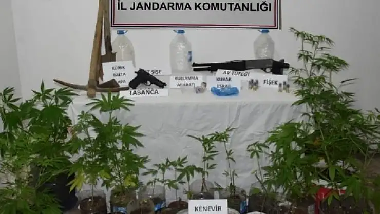 Sinop İl Jandarma Komutanlığı tarafından Boyabat ilçesinde yasadışı kenevir ekimi yaptığı tespit edilen şüpheli 2 şahsa yönelik yapılan operasyonda, 23 kök kenevir bitkisi ele geçirildi. Ayrıca şahıslardan 1 adet av tüfeği ve 1 adet tabanca elde edildi.