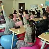 Sıra yerine pilates topuna oturarak eğitim görüyorlar