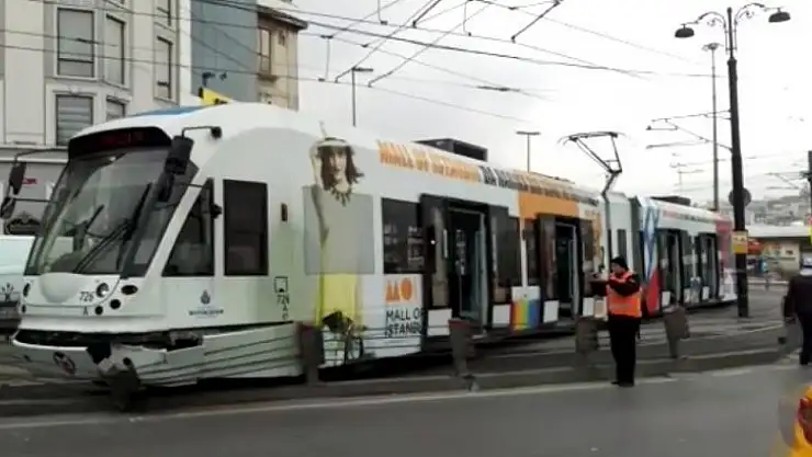 İstanbul'da Kabataş-Bağcılar seferini yapan tramvay, Sirkeci'de raydan çıktı.