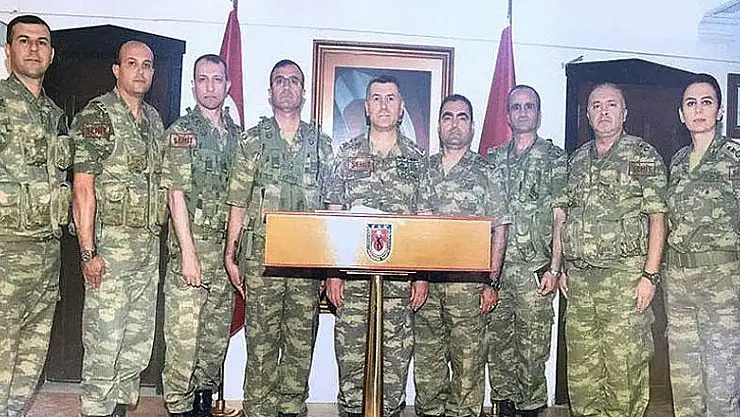 Tümgeneral Aydın'ın ortada durduğu fotoğrafta, şehitlerden Piyade Albay Oğuzhan Küçükdemirkol, Piyade Kurmay Albay Gökhan Eker, Jandarma Yarbay Songül Yakut, İstihbarat Yüzbaşı Koray Onay ve Yüzbaşı Koray Acar bulunuyor.