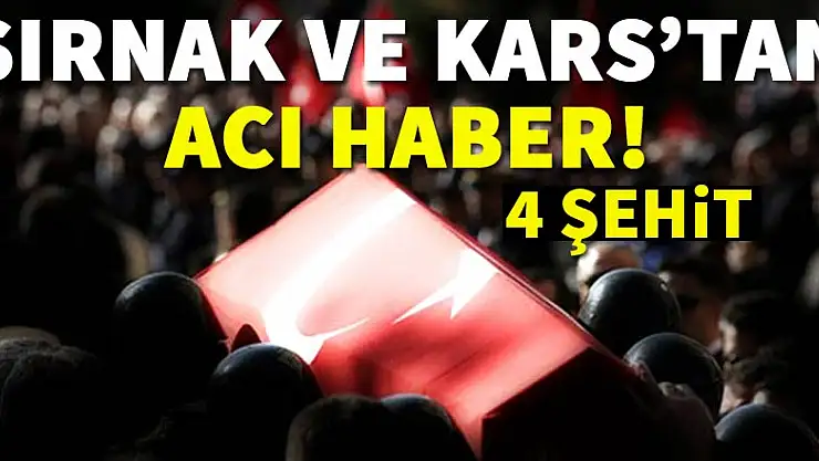 Şırnak ve Kars'tan acı haberler geldi! Şehit sayısı arttı