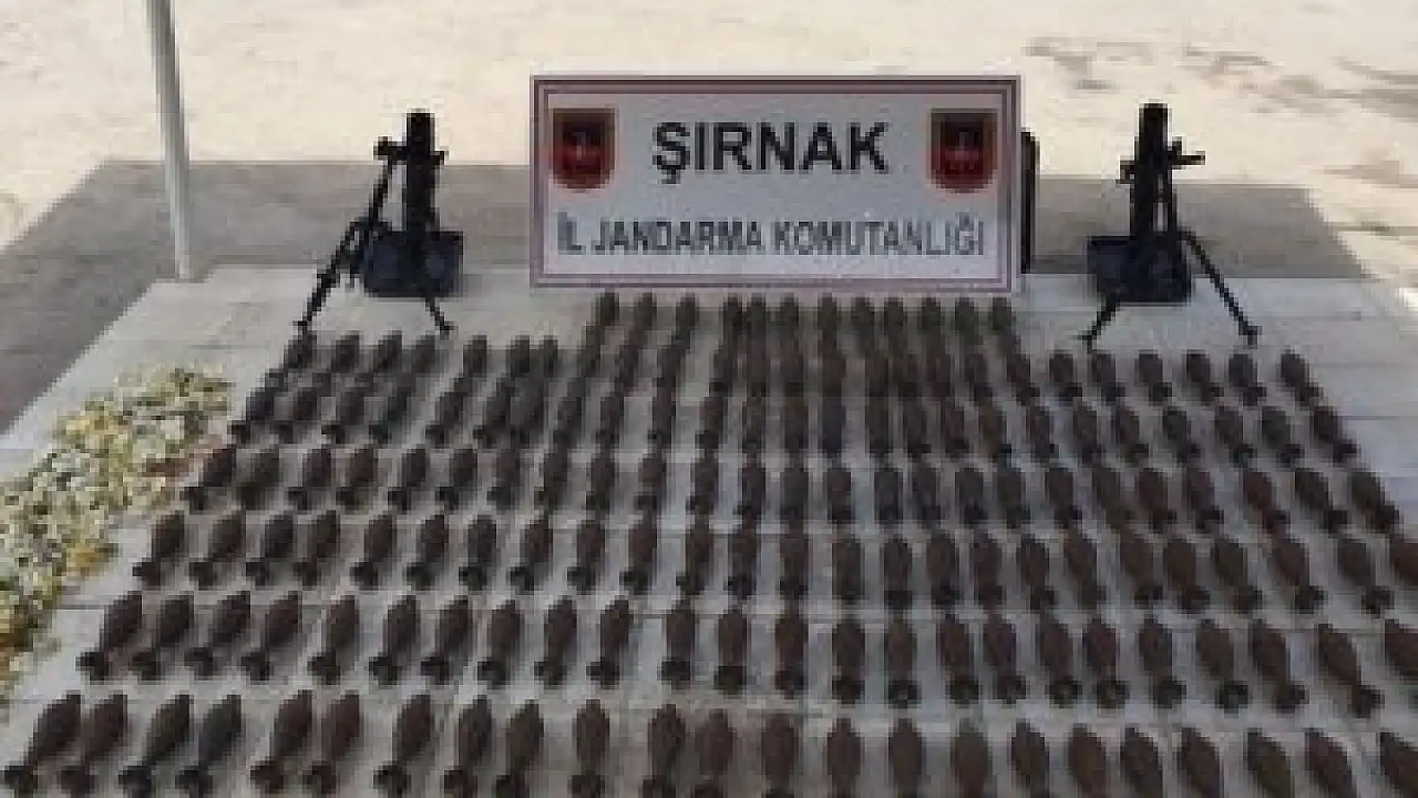 Şırnak İl Jandarma Komutanlığı tarafından gerçekleştirilen operasyonda, 187 adet 60 milimetre havan mühimmatı, 2 adet 60'lık havan ve dip tablası ile 400 adet sevk barutu ele geçirildi.