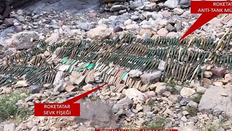 Valilikten yapılan açıklamada, Uludere ilçesinde bir ihbarı değerlendiren güvenlik güçlerince Andaç köyü Serin Vadi bölgesinde gerçekleştirilen arama tarama faaliyetleri kapsamında, dere yatağında teröristlere ait gömülü vaziyete 620 roket sevk fişeği, 320 anti personel ve 300 anti tank mühimmatı ele geçirildiği belirtildi.