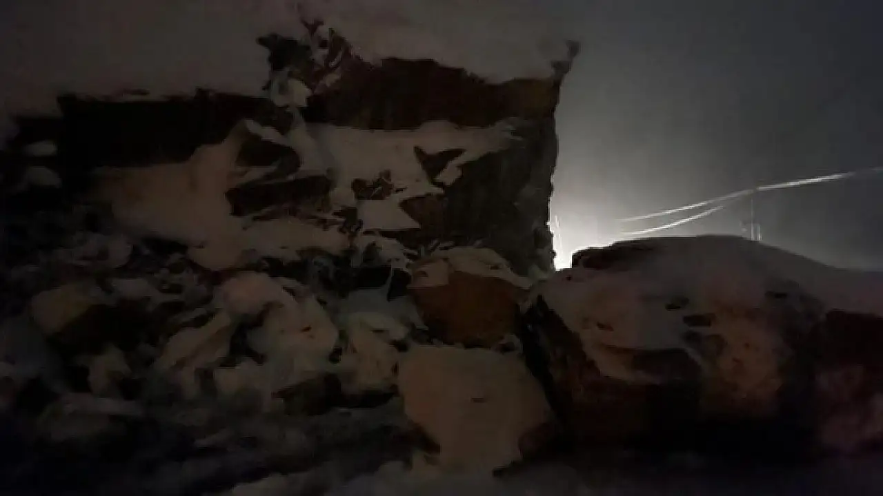 Şırnak'ın Beytüşşebap ilçesine bağlı Taşarası köyü Komato bölgesinde aşırı karla karışık yağmur sonrası dev kayalar yola düştü, ulaşım kapandı.