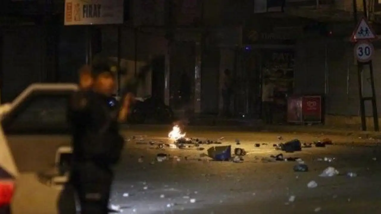 Cumhuriyet ve Ömer Kabak meydanlarında bir araya gelen yüzleri kapalı bir grup, polise taş ve molotofkokteyli ile saldırdı.