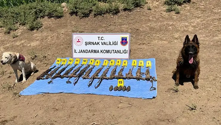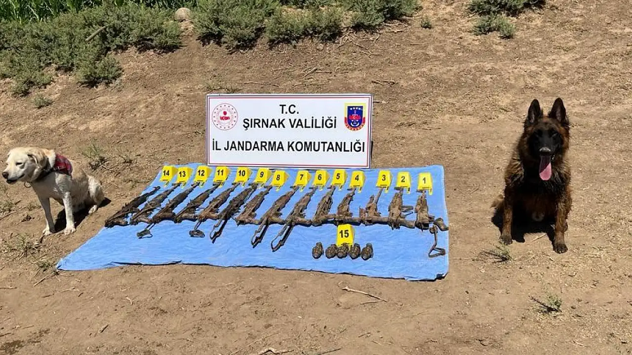 İÇİŞLERİ Bakanlığı, Şırnak'ın Silopi ilçesinde toprağa gömülü 14 tüfek ve 5 el bombası ele geçirildiğini duyurdu.