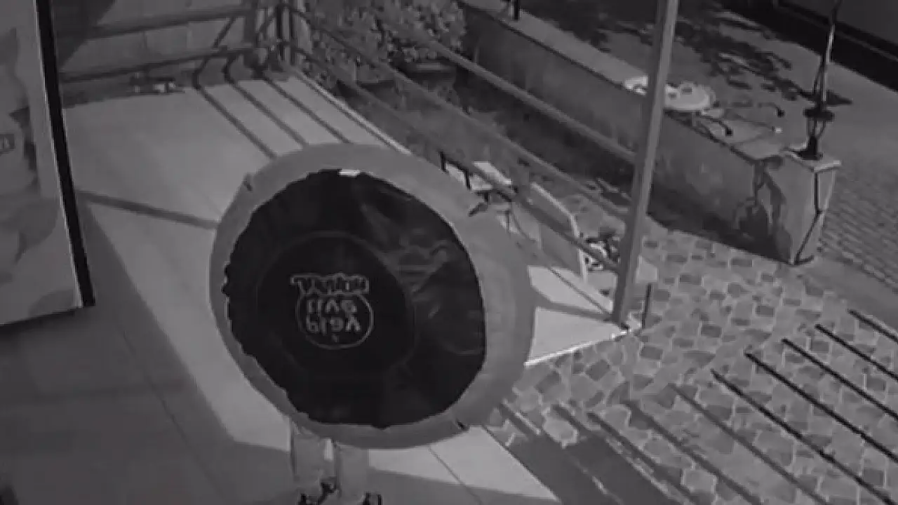 DENİZLİ'nin Pamukkale ilçesinde, bir kadının sırtında taşıdığı trambolinle kapalı olan marketin önündeki dolapların kilitlerini açmaya çalışması, güvenlik kamerasına yansıdı. Market sahibinin bağırması üzerine uzaklaşan kadının, hırsızlık sırasında trambolinle kendini gizlemeye çalıştığı sanılıyor.