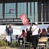 Bazıları, dün geceden bu yana belediye önünde bulunan işçilerin, alanda açtıkları pankartların arasındaki bekleyişi devam ediyor.