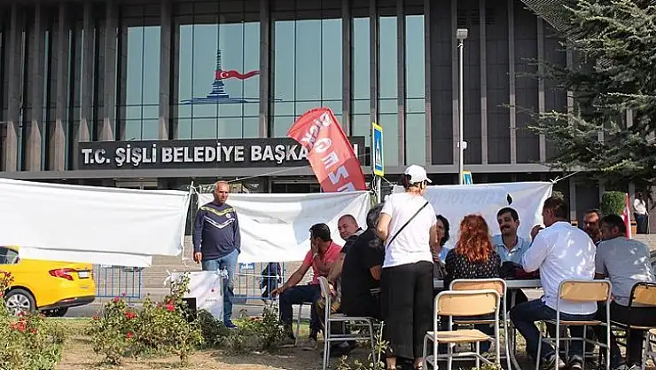 DİSK'e bağlı Genel-İş Sendikası üyesi bir grubun, Şişli Belediyesi önündeki iş bırakma eylemi sürüyor.