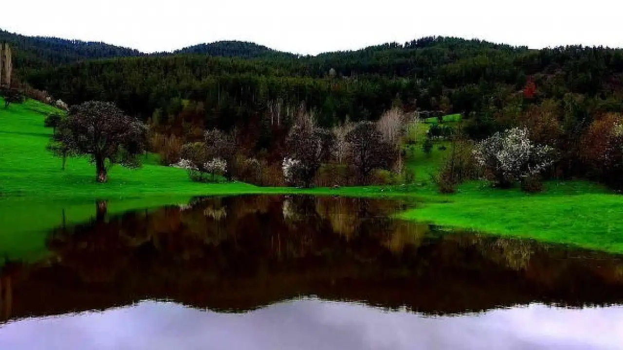 Yeşilin her tonunu görmenin mümkün olduğu Ormanağzı köyünün muhteşem manzarası havadan da görüntülendi.