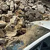 ÜSKÜDAR'da bir sitenin duvarı sabah saatlerinde park halindeki iki otomobilin üzerine çöktü.