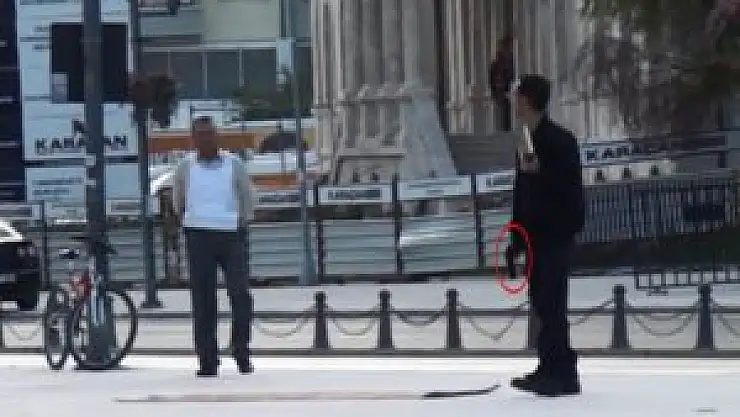 Polis ekipleri çelik yelek giyerek eylemciyi ikna etmeye çalıştı. İl Emniyet Müdürü Turgay Çalışkan da şahsı ikna etmek için olay yerine geldi. Bu sırada şahıs elinde tabanca ile beraberinde getirdiği ve üzerinde "Şerefsiz laiklik" yazılı pankartı yere sererek üzerinde yürüdü. Uzun bir sürenin ardından olay yerine gelen baş infaz koruma memuru Adnan Açıkgöz'ün ikna çabası ile tabancasının şarjörünü çıkarıp yere bırakan şahıs polislere teslim oldu. Polis ekiplerince gözaltına alınan eylemci, ifadesi alınma üzere emniyete getirildi.
