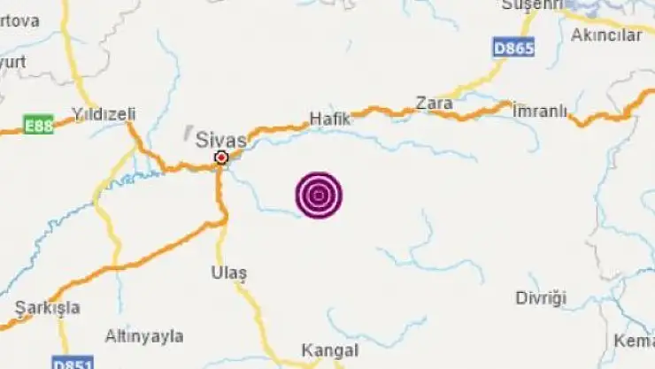 AFAD'dan yapılalan açıklamada 23 Şubat gece 01.42'de Sivas Merkezde 3,8 büyüklüğünde bir deprem meydana geldi.