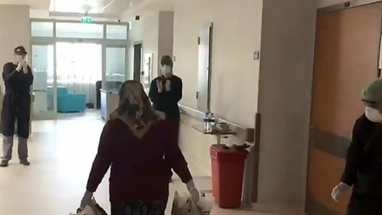 Tedavi süreçleri sona eren hastalardan bazıları, doktor ve hemşirelerin alkışları eşliğinde taburcu edildi. Bu anlar cep telefonu kamerasınca da kaydedildi.