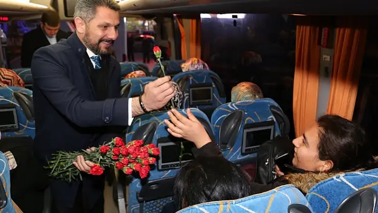 Sivrihisar Belediye Başkanı Hamid Yüzügüllü, sabahın ilk saatlerinde hareket edecek olan otobüsleri dolaşarak geziye katılan tüm bayanlara karanfil hediye ederek Kadınlar Gününü kutladı. Burada konuşan Başkan Yüzügüllü, “Hayatın her alanında fedakarlığı, üretkenliği ve duyarlılığı temsil eden kadınlarımızın 8 Mart Dünya Kadınlar Gününü en içten dileklerimle kutluyor, saygı ve sevgilerimi sunuyorum” dedi.