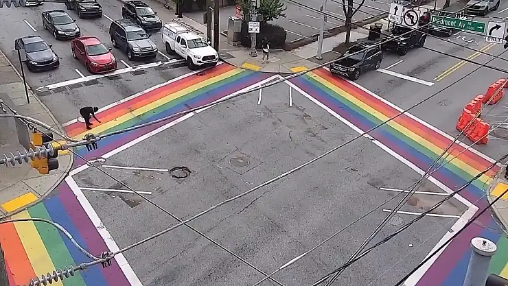 ABD'nin Atlanta kentinde siyahi bir ABD'li, LGBT topluluklarının simgesi haline gelen gökkuşağı rengine boyanmış yaya geçidine, Nazilerin sembolü olan 'Gamalı Haç' (svastika) çizdi.