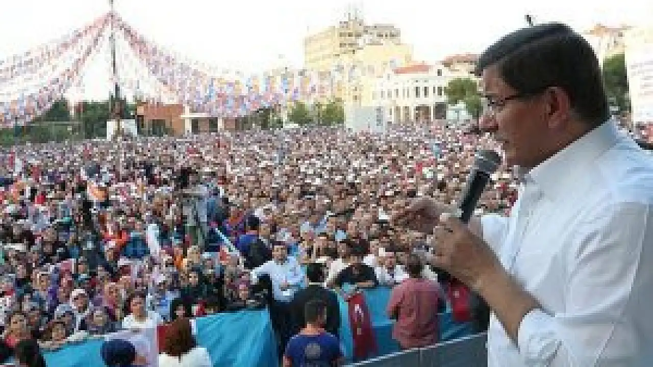 Davutoğlu, "Bizi aşkla sever misiniz, bizimle aşkla yola çıkar mısınız, kıyamete kadar bu dava yürüyüşünde beraber olur musunuz?" sorusuna alandakilerden "evet" cevabını alınca, sözlerini şöyle sürdürdü: