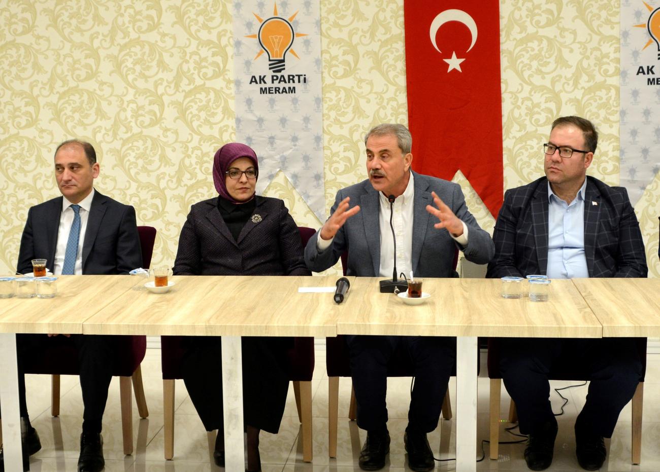 Toplantıda ilk konuşmayı yapan AK Parti Meram İlçe Başkanı Abdülkadir Özöğür, “16 Nisan’dan sonra bürokrasinin hantallığını çözmek suretiyle ekonomiye yön vereceğiz. Huzur, güven ve istikrar ekonomiye ivme kazandıracak. Huzur dediğimizde bunun içinde emniyet de var müreffeh bir şekilde yaşayacak vatandaşlar da. Güven dediğimiz zaman hükümet 5 yıl boyunca hiçbir şekilde erken seçim olmadan yatırımlarını yapacak. Herkes işine gücüne bakacak. İstikrar ile beraber artık bu coğrafya, dünya ülkeleri arasında gündemi belirlenen değil gündem belirleyen, yol çizen, istikamet belirleyen; bunun yanında mazlumun yanında olan ve mazluma sahip çıkan bir ülke haline gelecek” dedi.