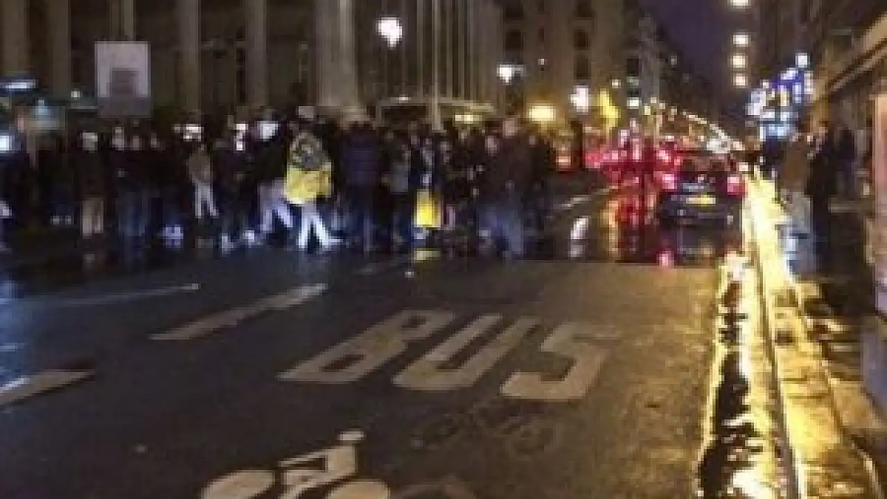 AFP'nin Borsa Meydanı'ndaki (Place de la Bourse) binası önünde toplanan Yahudi derneklerinin üyeleri, fişek benzeri cisimler atarak binaya girme girişiminde bulundu.