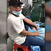 ÇİNLİ BİR FABRİKA İŞÇİSİ MASKELERİ AYAKKABILARINA SÜRDÜ