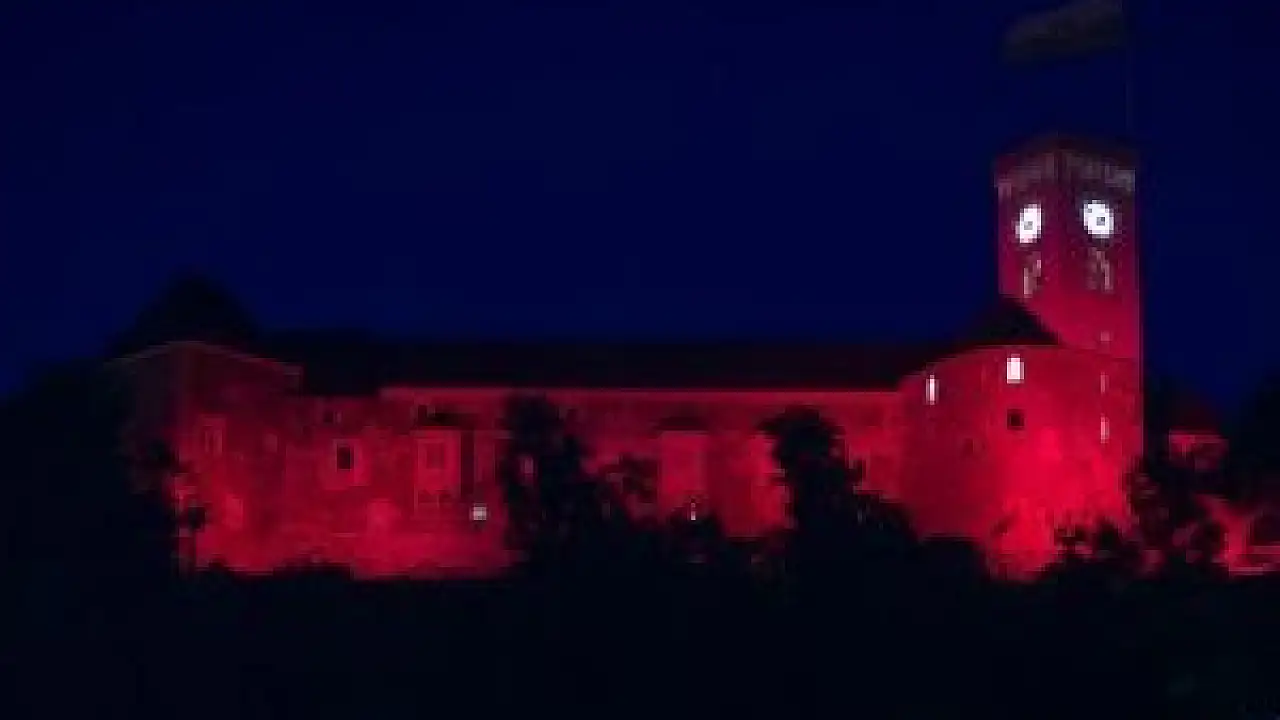 Slovenya'daki Ljubljana Kalesi kırmızı beyaza büründü