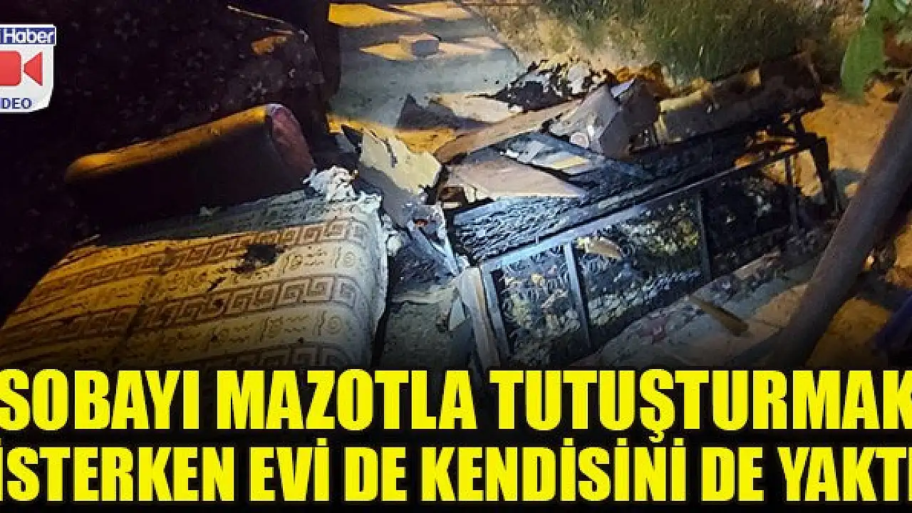 Bir vatandaş, evindeki sobayı mazot ile yakmaya çalışınca hem evi hem de kendisini yaktı.