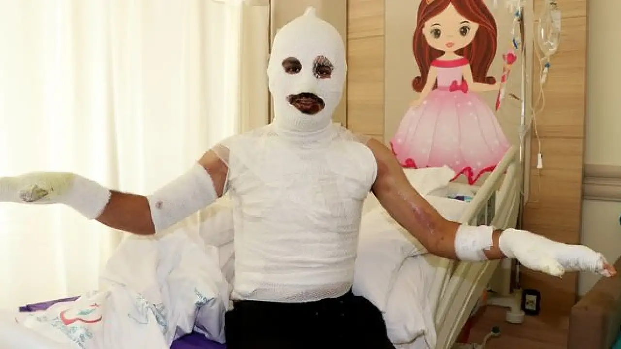 Erzurum'da sobaya tiner dökerken meydana gelen parlamada vücudunda 2. ve 3. derede yanıklar oluşan Emirhan Kurt'un şehir hastanesindeki tedavisi sürüyor.