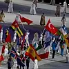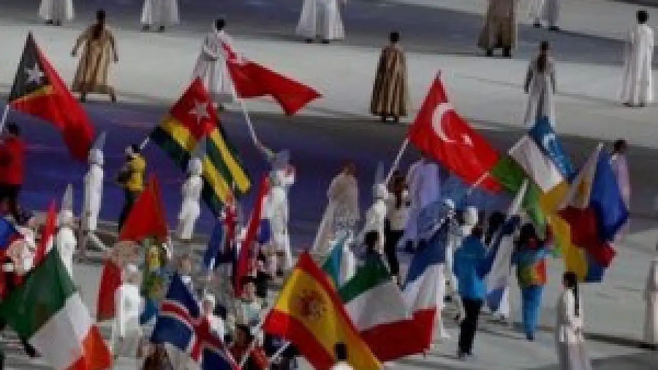 Programdaki iki gösterinin ardından, oyunlarda mücadele eden sporcular, ülke bayraklarıyla stada giriş yaptı. Bayrakları taşıyan sporcular, toplu olarak stadın ortasındaki platformun açılmasıyla tören alanına geldi. Diğer sporcular ve kafileler, yan kapıdan sahneye gelip tribünleri selamladıktan sonra tribünlerdeki yerlerini aldılar.