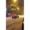 Esenyurt'ta kar yağışı sırasında rampa aşağı kaymaya başlayan otomobil yokuş çıkan servis aracına doğru kayarak ilerledi.