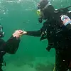 Soğuk denizin altında 'sürpriz' evlilik teklifi