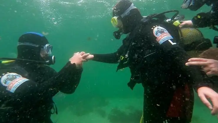 İstanbul'da yaşayan Halil Yılmaz, sıcaklığı 13 derece olan soğuk denizin altında kız arkadaşı Müge Hasanbaş'a sürpriz evlilik teklifi yaptı.