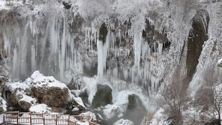 Sızır Şelalesi, havanın soğumasıyla birlikte buz tuttu.