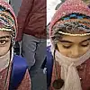 Soğuk havada saçları bile dondu