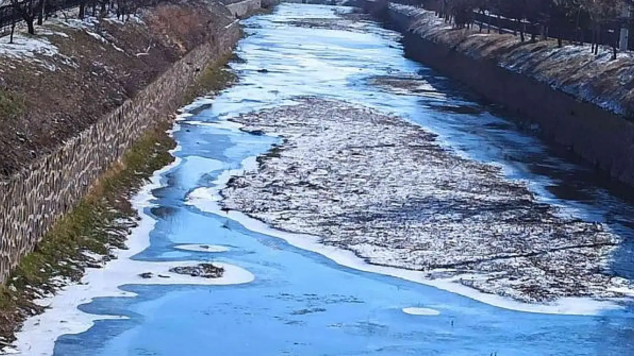 Afyonkarahisar'da hava sıcaklıklarının eksi derecelerin altına düşmesi ile kentin bir çok bölgesinde dereler ve süs havuzları dondu.