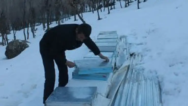 Şırnak'ın Beytüşşebap ilçesinde soğuklara dayanamayan bal arıları telef oldu.