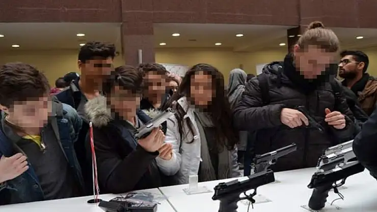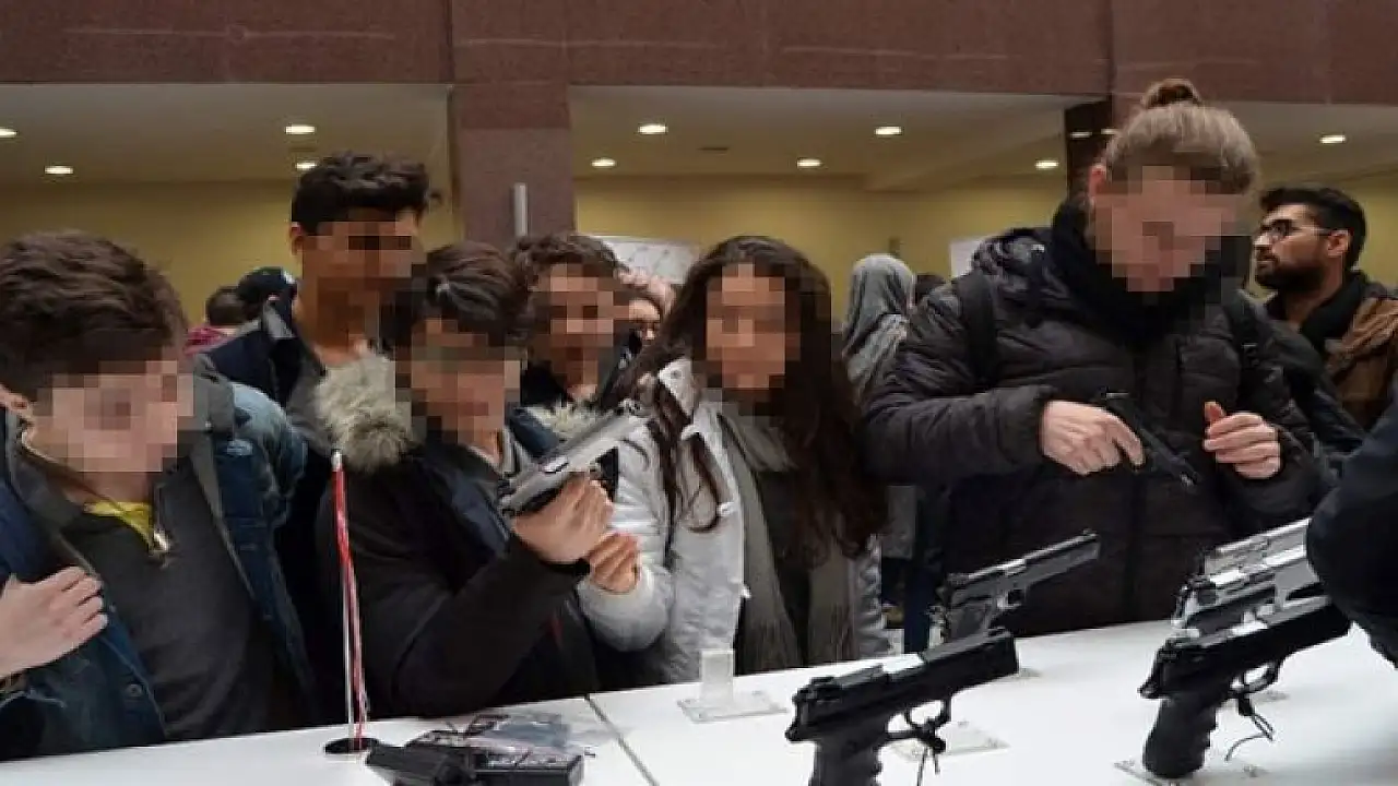 4. KTÜ Savunma Sanayi Günleri Etkinliği'nde sergilenen silahların öğrencilere tanıtılması ortaya şok görüntüler çıktı. Kız öğrencilerin dahi büyük ilgi gösterdiği fuara öğrencilerin götürülmesi tepki çekti.