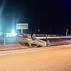 Sürücüsünün kontrolünü kaybettiği araç, refüje devrildi.