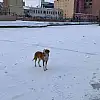Bir kısmı buz tutan Porsuk Çayı üzerinde sokak köpeğinin gezintisi ilginç görüntüler oluşturdu.
