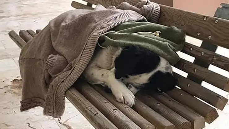 Adapazarı ilçesi Vali Mustafa Büyük Kız Anadolu İmam Hatip Lisesi'nde okuyan 10-B sınıfı öğrencisi Sümeyye Yılmaz, okul bahçesindeki bankta soğuktan korunmaya çalışan sokak köpeğine üzerindeki hırkasını örttü.