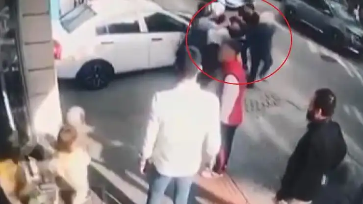 Sokak ortasında kadına şiddet kamerada