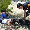 Tatbikat alanında enkaz altında hazırlanan bölüme, temsili olarak bir itfaiyeci konumlandırıldı. Ayrı ayrı arama yaptırılan beyaz saf labrador Pasha ve kurt köpeği Chivas, çok hızlı şekilde hedefine ulaşarak tecrübelerini konuşturdu. Pasha ve Chivas’ın, enkaz altında hayatta kalan insanlara yoğunlaştığına dikkat çeken eğitimciler, verdikleri tepkilerden, enkaz altındaki kişinin canlı olup olmadığının da anlaşıldığını söylediler.