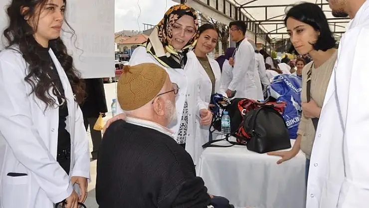 Sağlık Bilimleri Fakültesi Dekan Yardımcısı Doktor Hatice Dönmez nezaretinde, yoldan geçen vatandaşların tansiyonunu ölçen öğrencilere vatandaşlarda yoğun ilgi gösterdi.