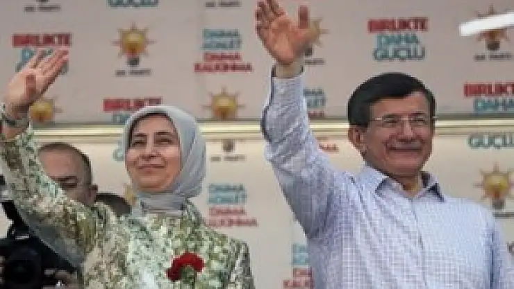 Başbakan Davutoğlu ve eşi Sare Davutoğlu, mitingin yapıldığı Cumhuriyet Meydanı'na parti otobüsüyle geldi. Burada vatandaşların sevgi gösterileriyle karşılanan Davutoğlu çifti, platformdan vatandaşları selamladı, karanfil dağıttı.