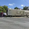 Güvercintepe Mahallesi Yeşilyurt Sokak'ta seyir halindeki İETT otobüsü, sürücüsünün direksiyon hakimiyetini kaybetmesi sonucu geri geri giderek bir sitenin duvarı ve elektrik direğine çarptıktan sonra devrildi.