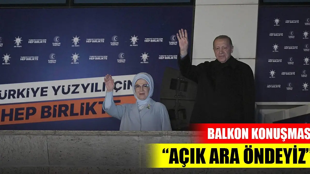 Cumhurbaşkanı Erdoğan, AK Parti Genel Merkezi'nin önünde toplanan kalabalığa balkondan hitap etti. Erdoğan, "Birileri mutfakta, biz de balkonda. Ülkemiz 14 Mayıs seçimleriyle bir demokrasi şölenini daha alnının akıyla tamamlamıştır. Henüz kesin sonuçlar belli olmamakla beraber açık ara önde bulunuyoruz. Hem yurt içi oyların gayrı resmi sonuçlarının belli olması hem yurt dışı oyların sayımının biraz daha vakit alacağı anlaşılıyor. Tabii biz fersah fersah geride olduklarını kendilerinin de bildiği bir tabloyu "öndeyiz" diye anlatarak milleti bir kez daha muhtemelen son kez kandırmaya çalışanlar gibi değiliz. Biz milletimize karşı hep harbi ve hasbi olduk. Bugün de seçimde açık ara önde olduğumuzu biliyor; ancak sonucun tam oranlarıyla ne şekilde tecelli ettiği henüz resmen önümüze gelmediği için milli iradenin tezahürünü bekliyoruz" dedi.