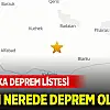 Son dakika deprem bilgileri, AFAD'ın son depremler listesinden alınmıştır.